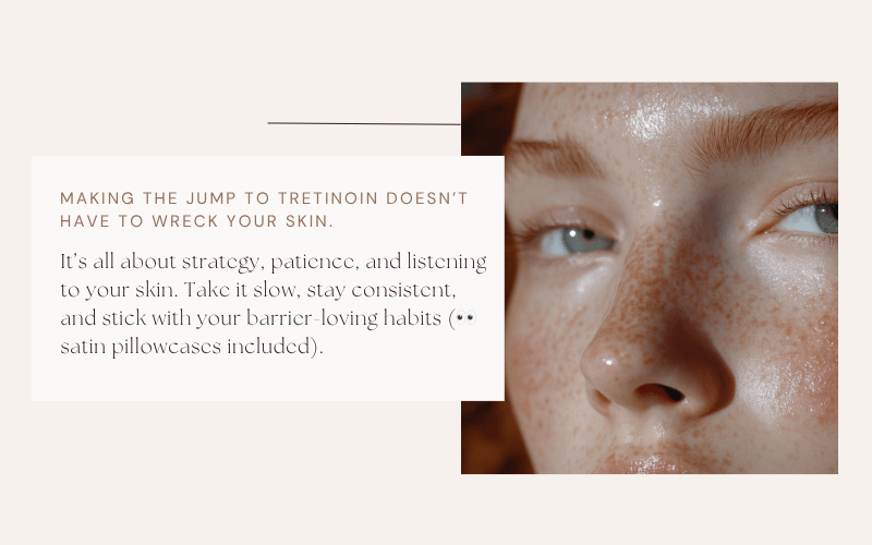 Making the jump to tretinoin doesn’t have to wreck your skin. It’s all about strategy, patience, and listening to your skin. Take it slow, stay consistent, and stick with your barrier-loving habits (👀 satin pillowcases included).